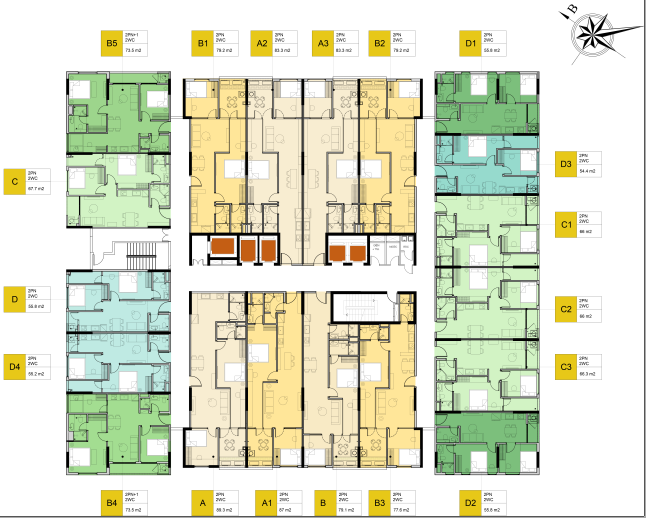 – Quy mô: tầng 1 thương mại dịch vụ, tầng 2-19 căn hộ nhà ở, tổng 342 căn, diện tích trung bình mỗi căn hộ từ 55 – 87m2